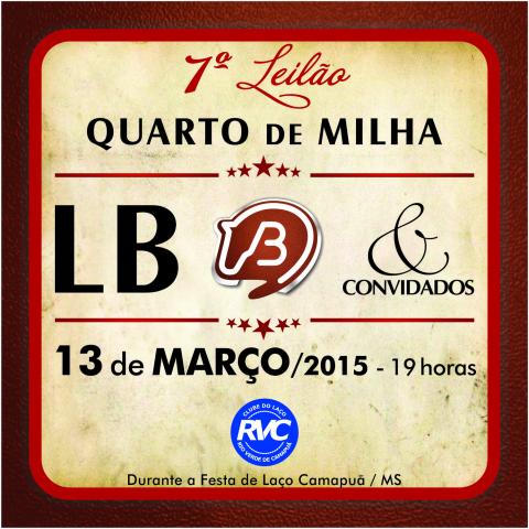 Durante o evento acontecerá ainda o tradicional Leilão de cavalos quarto de milha da Marca LB e Convidados, está será a 7ª edição do Leilão, que acontecerá no dia 13 (sexta-feira) ás 19 horas.
