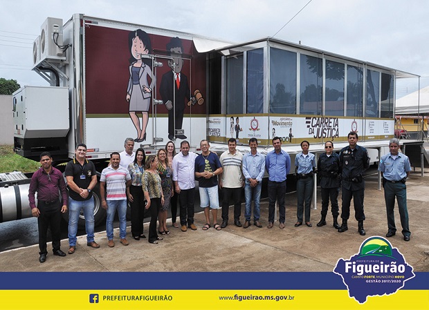 Na tarde da ultima segunda-feira (20), o Prefeito Rogério e o vice-Prefeito Fernando, acompanhados de alguns vereadores, do efetivo da Polícia Militar de Figueirão e do Pároco Padre João Alves, estiveram visitando as instalações da Carreta da Justiça, que atenderá em Figueirão até o dia 24 de novembro e está estacionada na Rua Quinze de Agosto, em frente ao galpão coberto da Igreja de Nossa Senhora da Abadia, onde aos sábados é realizada a Feira Municipal do Produtor.