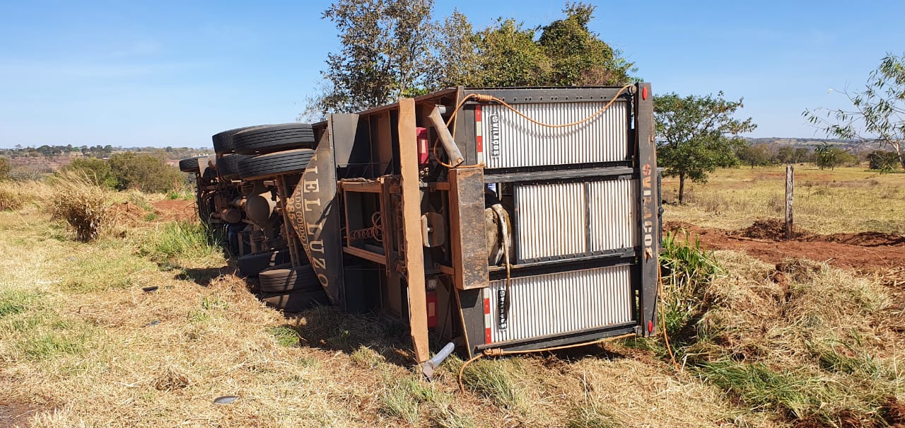 Na manhã desta quinta-feira (28), um caminhão boiadeiro carregado de boi gordo, tombou na MS-436 próximo a Camapuã, cidade a 140km de Campo Grande.
