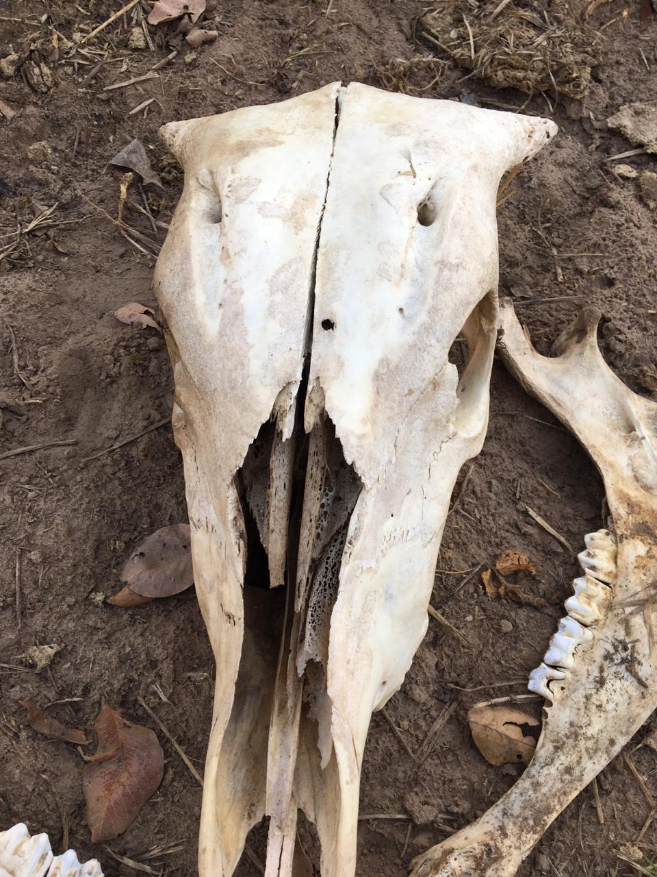 Havia apenas os ossos dos pés e da cabeça, sinais de que o animal foi "carneado", ou seja, mataram para levar a carne. Na cabeça notaram um furo que aparentava ser de arma de fogo, foi aí então que resolveram procurar a Polícia.