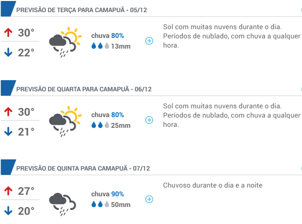 A temperatura máxima deve ficar em 30° e a mínima em 22°.