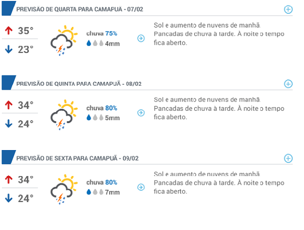 A temperatura máxima deve ficar em 34° e a mínima em 23°.