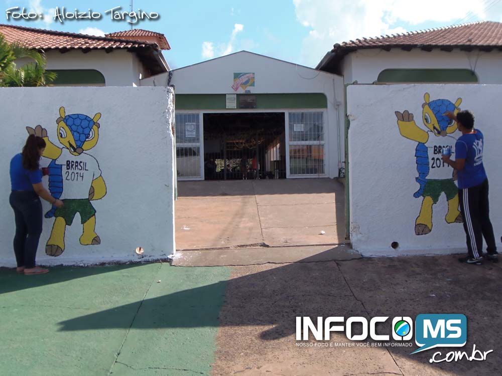 Vai ter Copa sim! E se depender do empenho dos alunos da Escola Abadia Faustino Inácio, será uma copa de muita alegria para a torcida brasileira. Alguns alunos e professores da escola estadual que fica localizada na Rua Pedro Celestino, em Camapuã, estão realizando a pintura do muro da escola com desenhos do ‘Fuleco’, mascote do mundial.