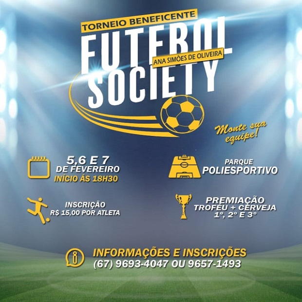Nos dias 05, 06 e 07 de fevereiro acontecerá um torneio beneficente de futebol society, em prol do tratamento de saúde de Ana Simões de Oliveira.