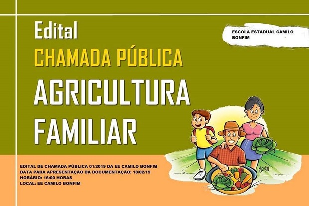 A Escola Estadual Camilo Bonfim, em Camapuã, abriu edital de Chamada Pública para a aquisição de gêneros alimentícios da agricultura familiar. Os interessados em participar da licitação devem entregar a documentação exigida até o dia 18 de fevereiro de 2019, às 16:00 horas, na Escola Estadual EE CAMILO BONFIM, localizada à R. DOS JESUÍTAS, 965, CENTRO., 965, município de CAMAPUA/MS.
