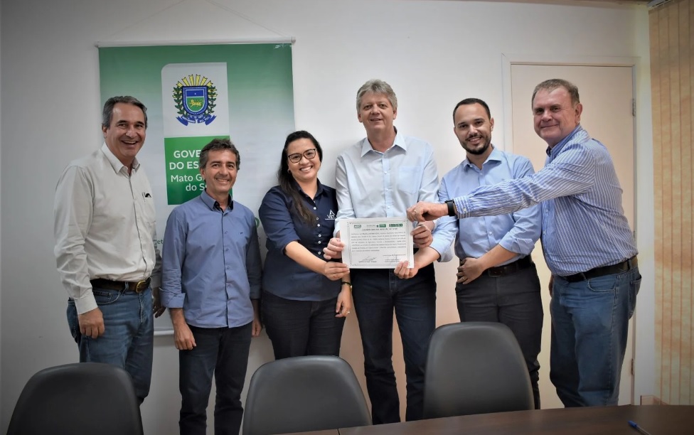 Mais uma empresa sul-mato-grossense recebeu o certificado de adesão ao SISBI-POA (Sistema Brasileiro de Inspeção de Produtos de Origem Animal) nesta terça-feira (13), entregues pelo secretário Jaime Verruck da Semagro (Secretaria de Meio Ambiente, Desenvolvimento Econômico, Produção e Agricultura Familiar) e Daniel Ingold, diretor-presidente da Iagro (Agência Estadual de Defesa Sanitária Animal e Vegetal).