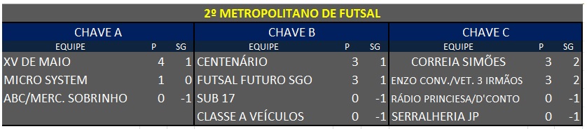 O 2º Campeonato Metropolitano de Futsal segue nesta sexta-feira (29) com mais três partidas válidas pela terceira rodada da competição, os jogos acontecerão no Ginásio de Esportes de Camapuã, confira os confrontos: