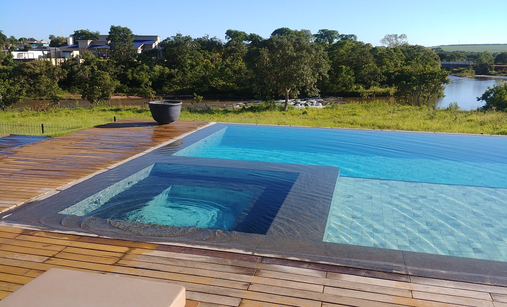 Piscina do Ives Hotel, ao fundo o Rio Sucuriú que corta a cidade de Costa Rica - Foto: InfocoMS