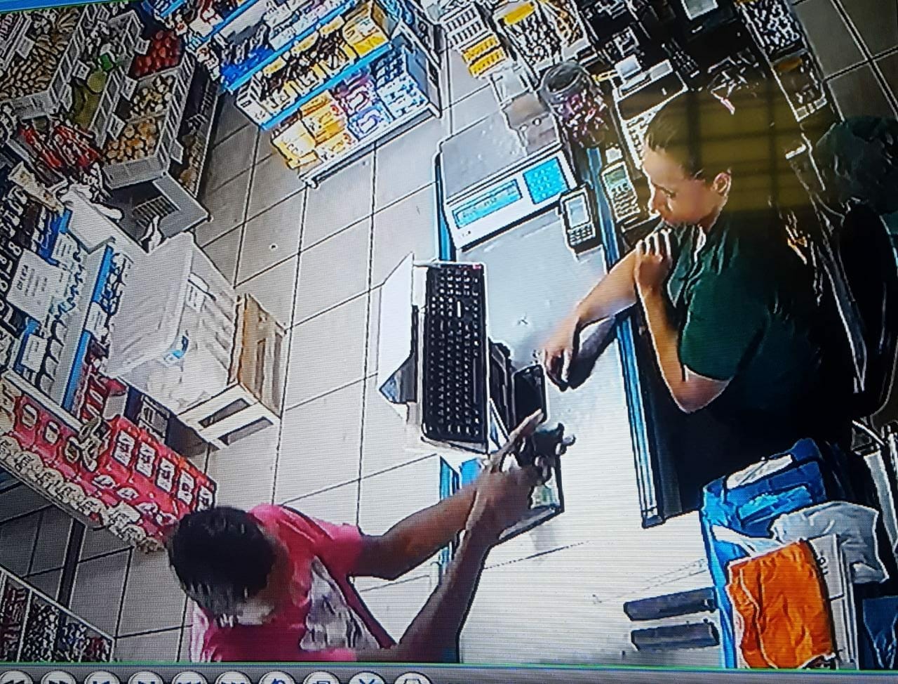 Trata-se de P. R. N. de 22 anos, que aguardou numa esquina até que a Conveniência ficasse sem movimento, entrou no estabelecimento e deu voz de assalto a funcionária, que no momento estava sozinha, o meliante estava armado com um revólver calibre 32 e pediu que a moça entregasse todo o dinheiro do caixa, aproximadamente R$ 400,00 e também o seu aparelho celular. Logo após, ele pediu para que a funcionária fosse para o fundo do mercado para que ele fosse embora, o mesmo saiu tranquilamente com rumo desconhecido.