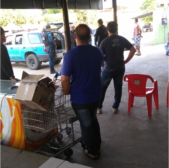 Após a prisão, PM's levam os suspeitos ao estabelecimento para reconhecimento - Foto: WhatsApp / InfocoMS