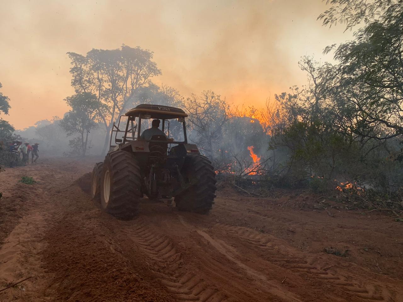 Trator de uma das fazendas fazendo acero para conter o fogo - Foto: WhatsApp / InfocoMS