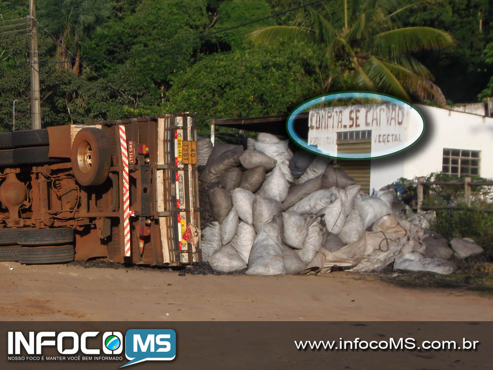 Um caminhão marca Wolkvagem, cor branca, carregado de carvão vegetal tombou por volta das 2 horas desta quinta-feira (28) na zona urbana de Camapuã. O veículo que era conduzido por Tiago Dias Bueno, 27 anos, tombou na rua Pedro Celestino (BR) 060, em um trecho conhecido como “Curva do Catito”.