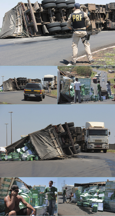 “Eu vinha bem devagar com o caminhão e deve ter tombado por algum movimento da carga. O frete vinha de Luis Antônio-SP e seguia para Corumbá. Já comuniquei a empresa e o seguro foi acionado”, relata o motorista da carreta, Robson da Costa, 25, que estava tranqüilo apesar do acidente.
