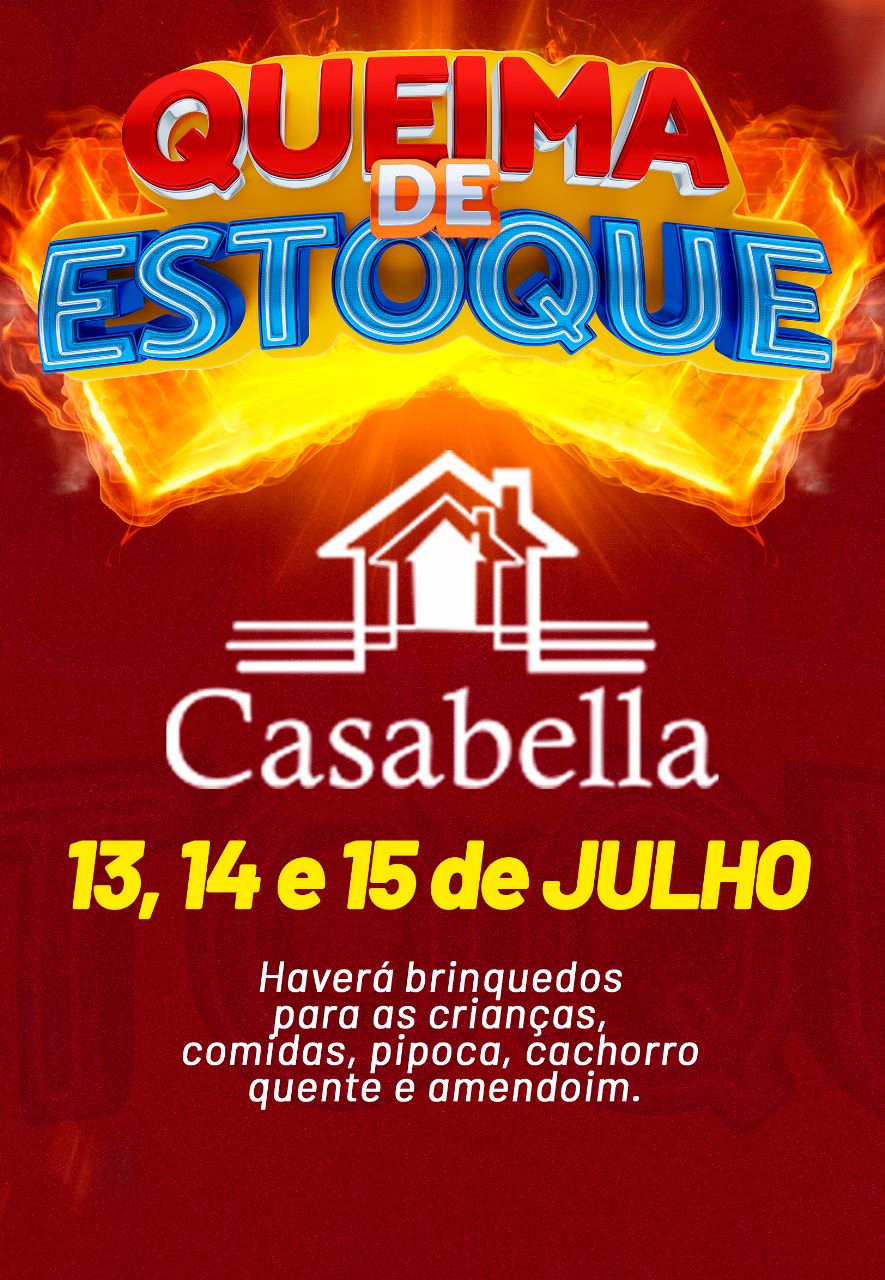 A Casabella Materiais de Construção, que fica em Camapuã, cidade a 140km de Campo Grande, realiza nos dias 13, 14 e 15 de julho, uma grande queima de estoque. Haverá brinquedos para as crianças e vários tipos de comida como, cachorro quente, pipoca e amendoim.