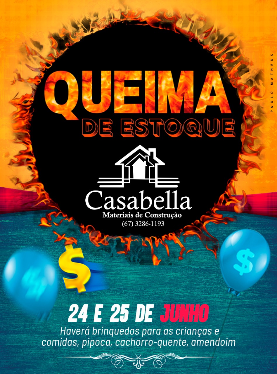A Casabella Materiais de Construção, que fica em Camapuã, cidade a 140km de Campo Grande, realiza nos dias 24 e 25 de junho, uma grande queima de estoque.