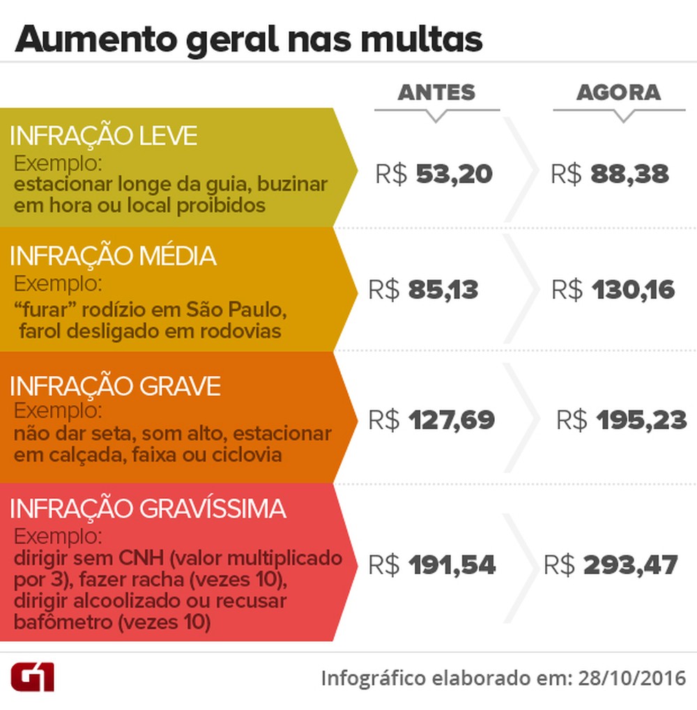 A mudança aconteceu na mesma época em que o valor de todas as multas foi reajustado e começaram a valer outras alterações no Código de Trânsito.
