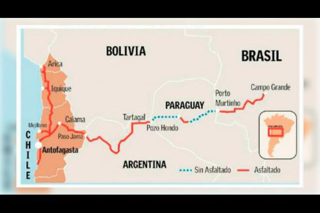 Trajeto co corredor Bioceânico, rota que encurtará as exportações e aumentará a circulação de produtos de alto valor agregado em MS - Divulgação