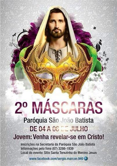 De 4 á 6 de julho acontecerá no Sítio Santa Terezinha do Menino Jesus (Próximo ao Posto São Pedro) o 2º Retiro para jovens Máscaras, realizado pela Paróquia São João Batista.