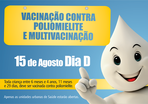 será realizado neste sábado (15), o dia ‘’D’’ da Campanha de vacinação contra a Poliomielite e atualização da caderneta de vacinação.