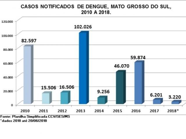 Segundo o balanço, divulgado pela SES (Secretaria de Estado de Saúde), 6.201 pessoas tiveram dengue em 2017 e três pessoas morreram, nas cidades de Aquidauana, Cassilândia e Camapuã. Em 2016, foram 19 mortes.