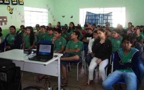 Alunos do 7º ao 9º ano do ensino fundamental ouviram a palestra proferida pela enfermeira da Secretaria Municipal de Saúde, Sabrina Piacentini, juntamente com a auxiliar Talita Graeff.