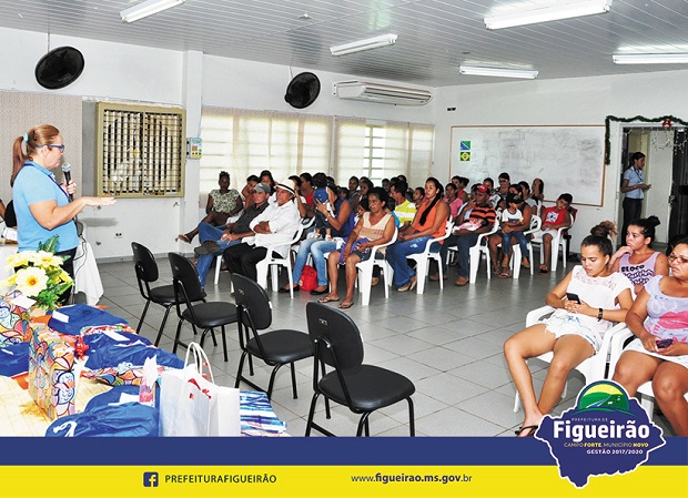 A reunião foi conduzida pela Assistente Social Olegna Andréa Silva, que é Gestora do Cadastro Único e do Programa Bolsa Família em Figueirão, e contou com a presença da maioria das famílias cadastradas. “Fizemos esta reunião para confraternizar com as famílias que atendemos, mas a maioria não vem por ser dia de trabalho e horário de serviço. Mas, como atendemos 497 famílias no Cadastro Único e 115 famílias no Bolsa Família, sempre vem bastante gente em nossas reuniões”, disse Olegna.