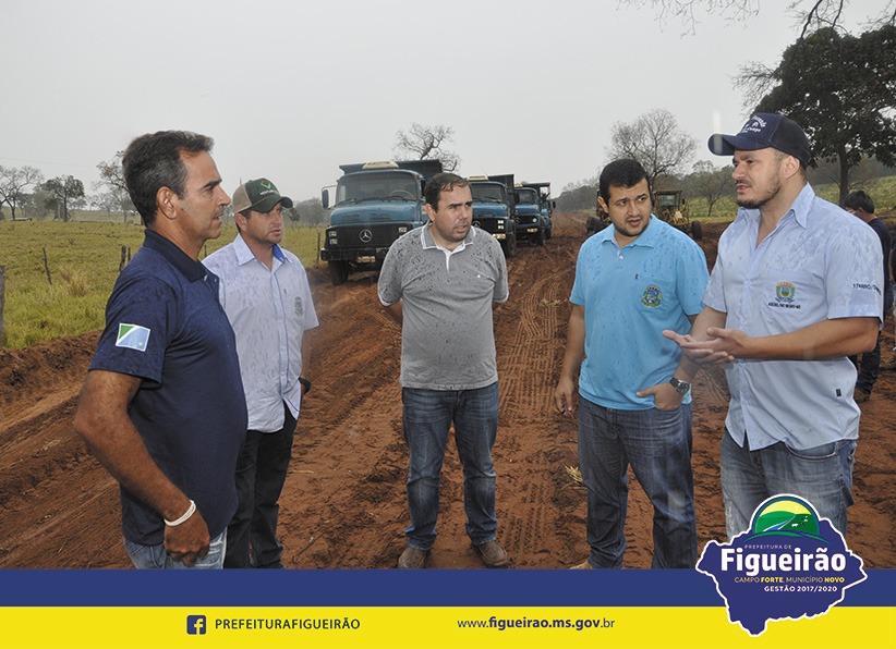 O prefeito de Figueirão, Rogério Rosalin acompanhado do vice-prefeito Fernando Martins e do secretário de Infraestrutura Denivan Barbosa, estiveram na manhã da sexta-feira (18), na Região do Galeano, que liga várias propriedades rurais, onde a Agesul (Agência Estadual de Gestão de Empreendimentos), do governo do Estado, com apoio da prefeitura, está fazendo um serviço de levantamento da estrada para posterior cascalhamento, serviço que vai ficar bom por vários anos, atendendo o clamor antigo da população que vive naquela região. Na ocasião o prefeito Rogério agradeceu ao governo do Estado, ao falar com o engenheiro da Agesul, presente na obra.
