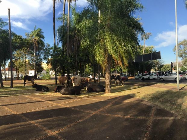 Depois, conforme testemunhas, a boiada seguiu pela avenida Duque de Caxias, passou em frente ao Hospital Militar de Aérea e está parada na praça Nilton Cavalcante, que integra o Complexo Cabeça de Boi, e fica no cruzamento das avenidas Duque de Caxias e Afonso Pena.