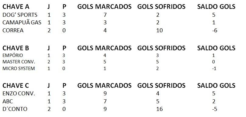 No primeiro confronto da noite jogaram pelo grupo C Enzo Conveniência e D’Conto Auto Peças, a equipe do D’Conto não resistiu a forte pressão dos adversários e acabou perdendo por 9 á 4, dando adeus a competição, já a Enzo Conveniência assumiu a liderança e disputa a classificação do grupo na próxima rodada contra a equipe ABC/Mercearia Sobrinho.