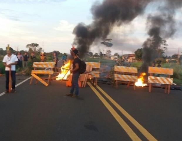 Os índios colocaram paus, galhos de árvores e atearam fogo em pneus na pista, bloqueando os dois sentidos da via. A PRF (Polícia Rodoviária Federal) recomenda aos usuários que vão seguir pela rodovia, que adiem a viagem para após o meio-dia.