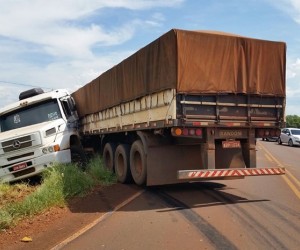 Maracajú: Motorista perde controle de carreta e trava trânsito em rodovia