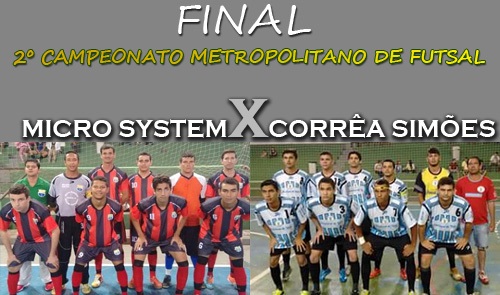 As equipes Micro System e Corrêa Simões são as finalistas do 2º Campeonato Metropolitano de Futsal, as fortes equipes do futsal camapuanense garantiram vaga na decisão após vencerem Enzo Conveniência/Veterinária 3 Irmãos e Futsal Futuro/Fundesg São Gabriel, respectivamente.