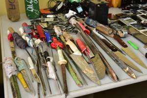 Facas e celulares são apreendidos durante uma revista na Unidade Prisional do Puraquequara, em Manaus