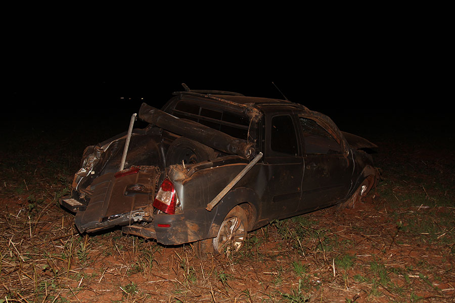 O carro Fiat Strada placa HTQ 0047 de Chapadão do Sul, dirigido por I.R.N (51 anos) saiu da pista e capotou várias vezes na lavoura.