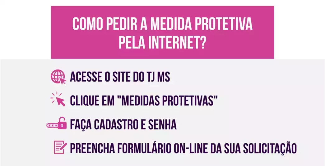 Para pedir a medida protetiva pela internet basta acessar o site do TJ MS/medida Protetiva (clique aqui).