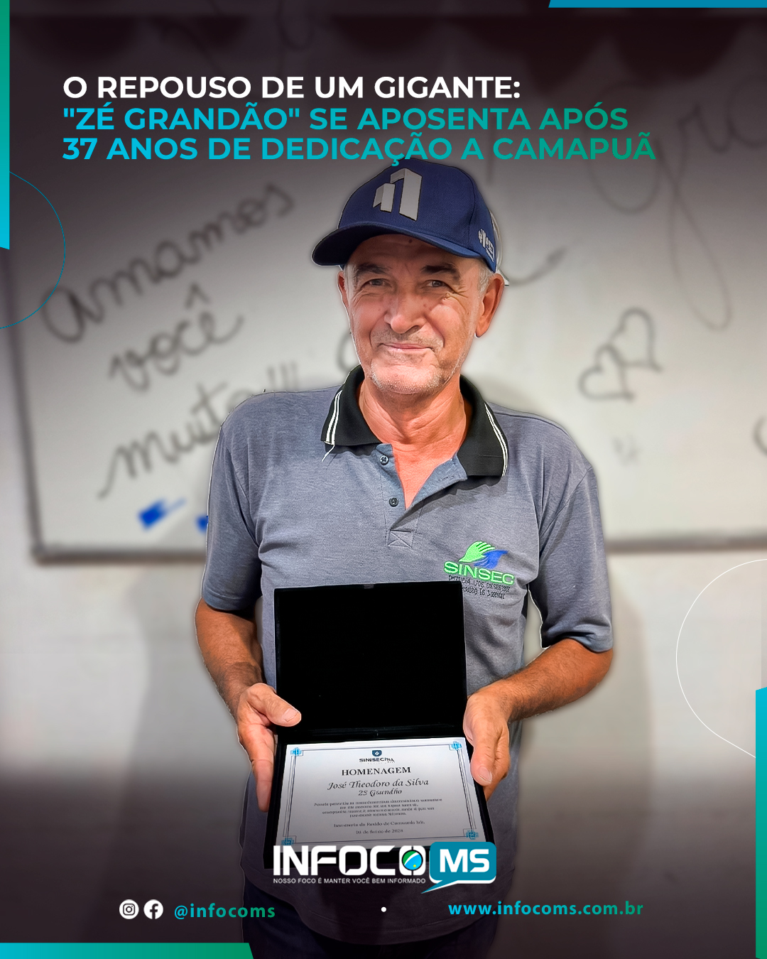 Camapuã se despede hoje do serviço diário de um de seus filhos mais dedicados. Zé Grandão sai de cena no pátio da prefeitura, mas entra definitivamente para a galeria de personagens inesquecíveis da cidade. Fica o exemplo para os novos servidores de que o trabalho público, quando feito com amor, deixa marcas que o tempo e a estrada jamais apagarão.