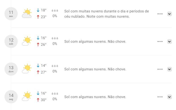 Previsão do tempo para Camauã nos próximos dias - Imagem: reprodução / Clima Tempo