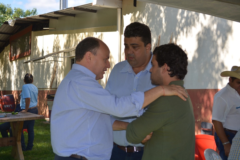 Deputados Estaduais Junior Mochi (PMDB), Beto Pereira (PSDB) e Prefeito de Camapuã Delano Huber (PSDB) em conversa no 3º Leilão pela Vida no Figueirão neste final de semana. Foto: InfocoMS