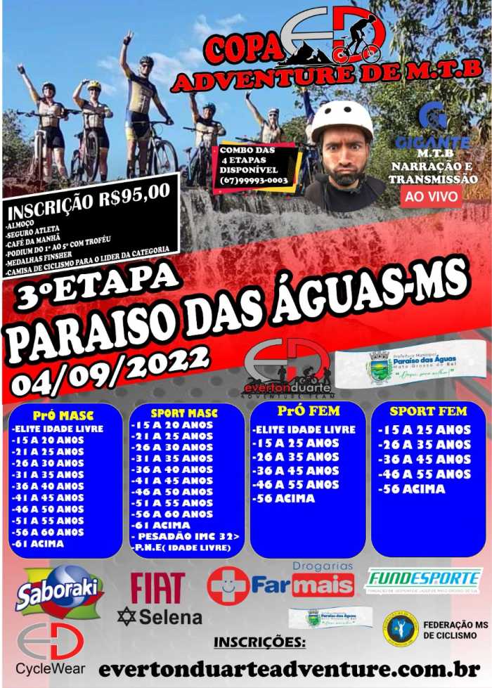 A etapa integra o calendário regional da modalidade e é organizada pela equipe ED Adventure, com apoio da Federação de Ciclismo de Mato Grosso do Sul, garantindo alto nível técnico à competição.