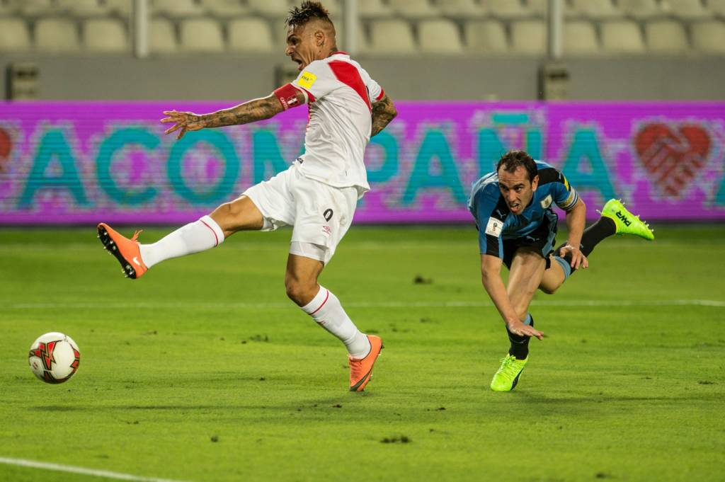Paolo Guerrero, do Flamengo, marcou o gol de empate do Peru em cima do Uruguai nesta terça (Foto: AFP PHOTO / Ernesto BENAVIDES)