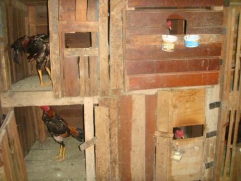 Na residência, os 17 galos da raça “índio” estavam presos em pequenas caixas com pouco espaço, em ambiente muito quente, com as esporas cortadas e várias lesões. No local foram apreendidas ainda 11 esporas artificais de plástico e duas esporas de metal, as quais são utilizadas no momento das brigas, além de 28 seringas e frascos de medicamentos, tais como: terramicina, tretador e outros, os quais são utilizados para tratar os galos que sobrevivem às brigas.