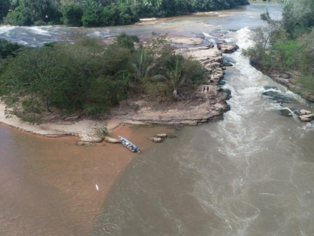 Neste domingo, uma equipe ficou de longe e usou um drone para identificar pescadores que estariam pescando na em uma corredeira, a 40 quilômetros da cidade, denominada “Cachoeira das Palmeiras” (local proibido), no rio Taquari.