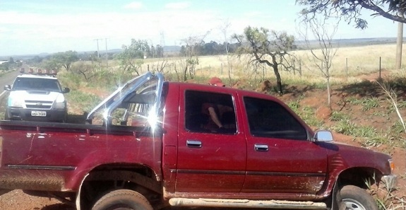 Os policiais se deslocaram até o local e encontraram o autor na BR-060, com a referida caminhonete parado fora da pista. Ao visualizar a polícia militar o suspeito tentou sair com o veículo, porém não conseguiu e foi detido pela guarnição de serviço.
