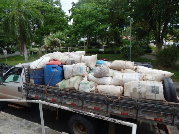 Maconha apreendida pela polícia em aldeira teve que ser transportada por vários veículos (Foto: Divulgação / Polícia)