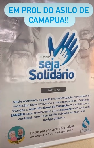 A Sociedade de Proteção aos Idosos de Camapuã, celebrou uma parceria com a Sanesul (Empresa de Saneamento de Mato Grosso do Sul), para que a população em geral possa contribuir com a entidade, por meio de doações debitadas na fatura de água/esgoto.