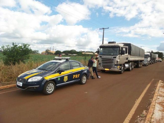Minutos após a abordagem dos batedores, as carretas e o caminhão 'caíram' na barreira da PRF. Segundo os policiais, há aproximadamente três mil pacotes de cigarro, nos três veículos, e a carga é avaliada em R$ 2 milhões.