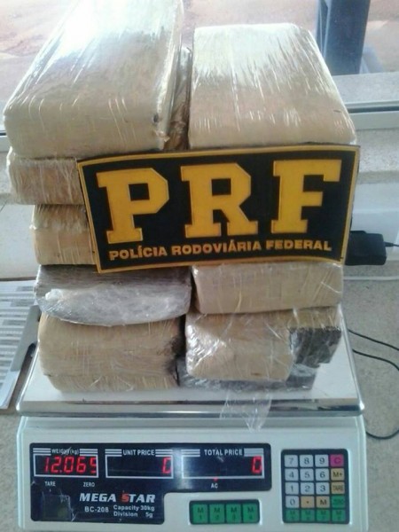 Durante uma fiscalização, os policiais avistaram três garotas, em um veículo Volvo, trafegando no sentido norte. Durante a abordagem, a PRF localizou uma mala contendo 11 tabletes de uma substancia análoga a maconha, que após pesagem totalizou 12 quilos.