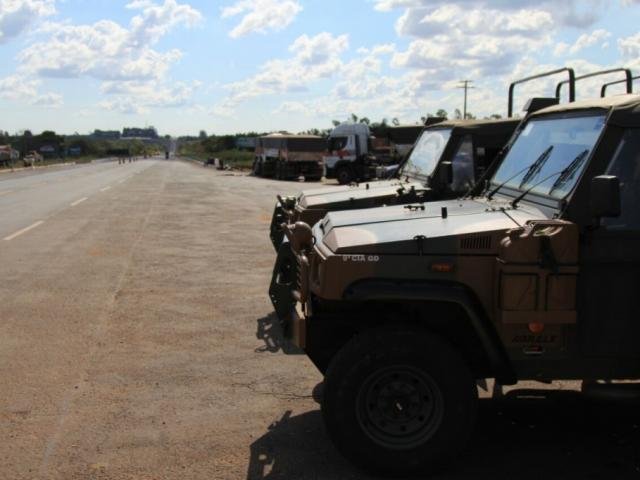 Cerca de 20 militares do Exército acompanhados da Polícia Rodoviária Federal e Militar acompanham no início desta tarde (30), a saída de caminhoneiros de pontos de manifestação na rodovia BR-163 em Campo Grande.