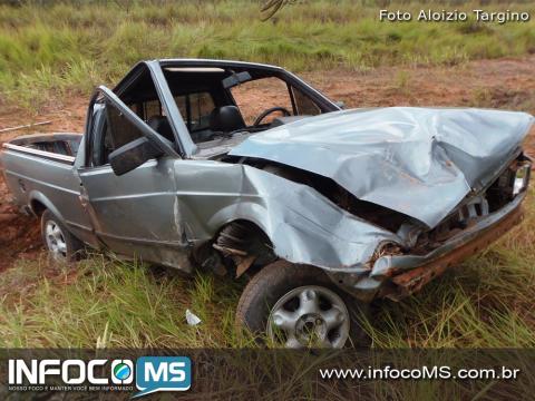 Uma Saveiro de cor cinza com placas de Costa Rica – MS capotou na manhã desta segunda-feira (17), no KM 05 da rodovia MS-436, distante 13 quilômetros do centro de Camapuã sentido Figueirão.