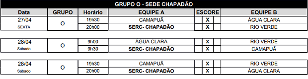 A seleção de Camapuã está no grupo “O”, juntamente com a anfitriã Serc Chapadão, Rio Verde e Água Clara.